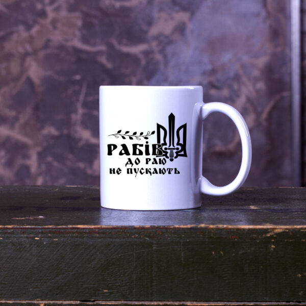 Чашка с рисунком РАБІВ ДО РАЮ НЕ ПУСКАЮТЬ.